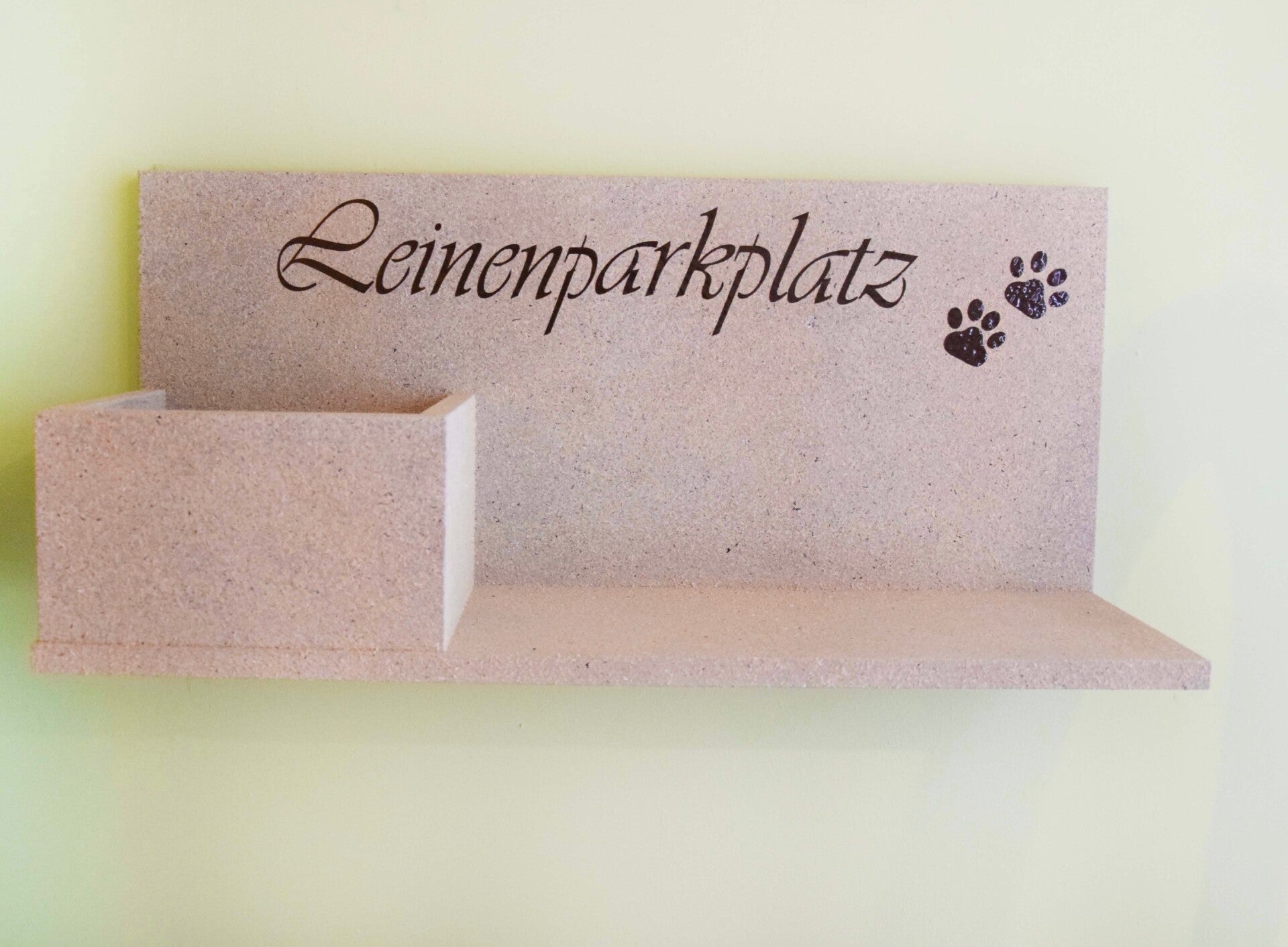 Schriftzug "Leinenparkplatz" und 2 Hundepfoten dunkelbraun (aus hochwertiger Vinylfolie)