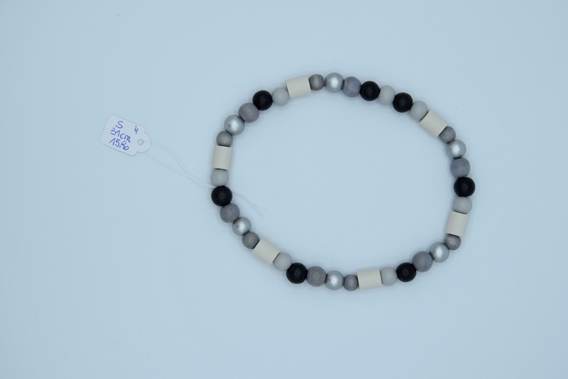 Die Halskette besteht aus 6 EM-Keramik Pipes und Holzperlen (grau-schwarz-silber)