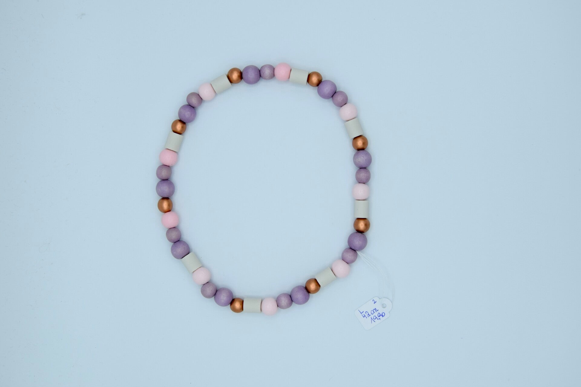 Die Halskette besteht aus 8 EM-Keramik Pipes und Holzperlen (rosa-lila-gold))