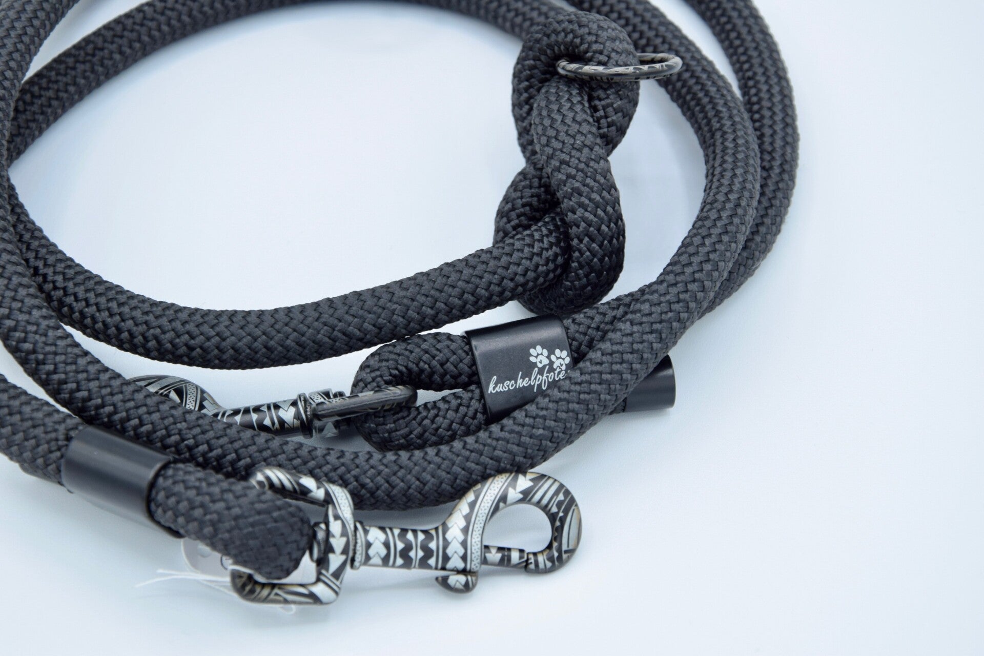 Beschläge und Karabiner in schwarz-silber gemustert
