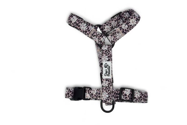 Ein wunderschönes Brustgeschirr in der Farbe nude-schwarz mit dem Design Margeriten. Die Beschläge sind in schwarz gehalten.