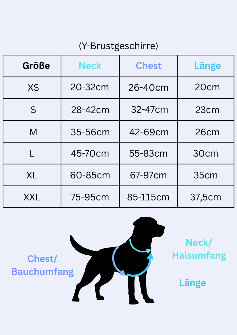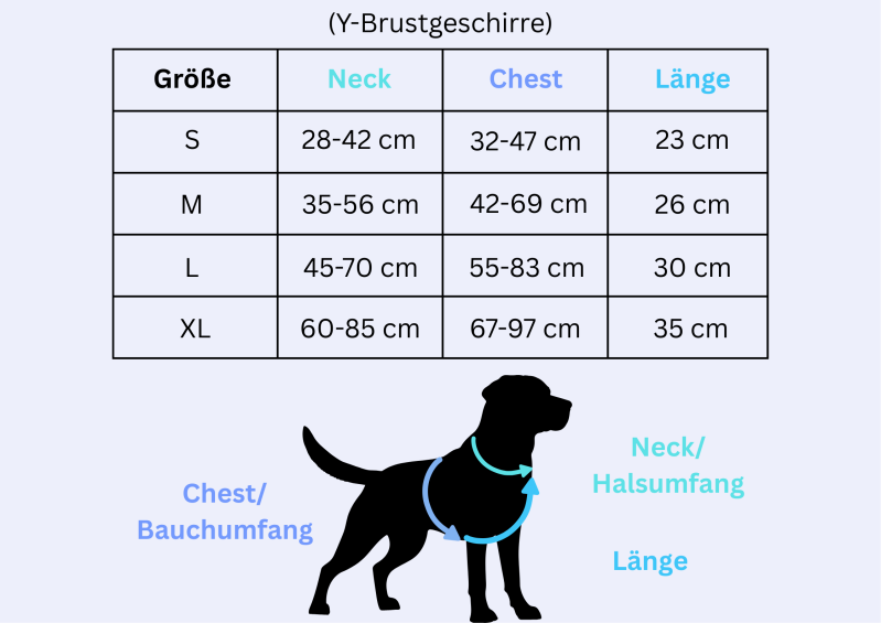 Hier findest du die Größentabelle für die Brustgeschirre !
